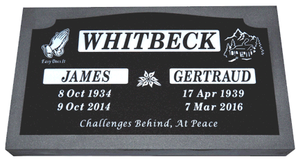 12”x 20”x 3” - Usually maximum cremation size or standard for a burial plot